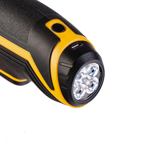 Аккумуляторная отвертка Denzel CSL-3,6-01 используется для работы с саморезами, шурупами и винтами при монтажных работах. Поворотная обрезиненная рукоятка позволяет работать в труднодоступных местах. Благодаря мощности 3,6 Вт, максимальному крутящему моменту 4 Нм и частоте вращения 200 об/мин быстро справляется с закручиванием крепежа. Встроенный литий-ионный аккумулятор 1,3 Ач отличается низким саморазрядом, быстрой скоростью зарядки и отсутствием эффекта памяти. В комплекте идет набор из 54 бит, что позволяет приступить к работе сразу без необходимости покупки дополнительной оснастки.