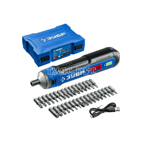 Аккумуляторная отвертка, кейс, 33 биты, Профессионал ЗУБР ZUBR GO 4 Vmax PSD-4S