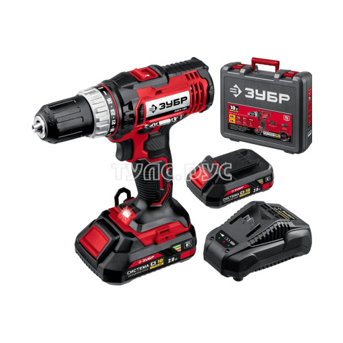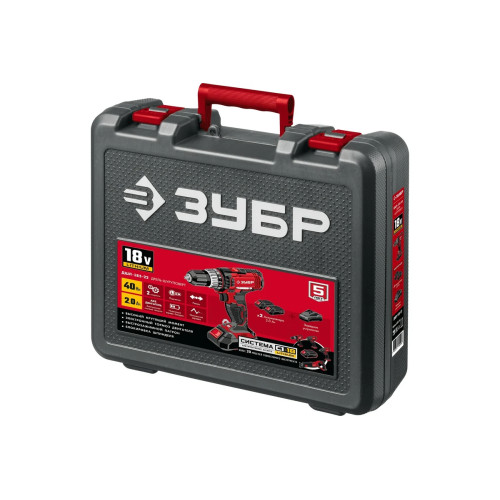 - Дрель-шуруповерт, кейс ЗУБР С1-18, 18 В, 40 Н·м, 2 АКБ (2 А·ч) ДШЛ-185-22