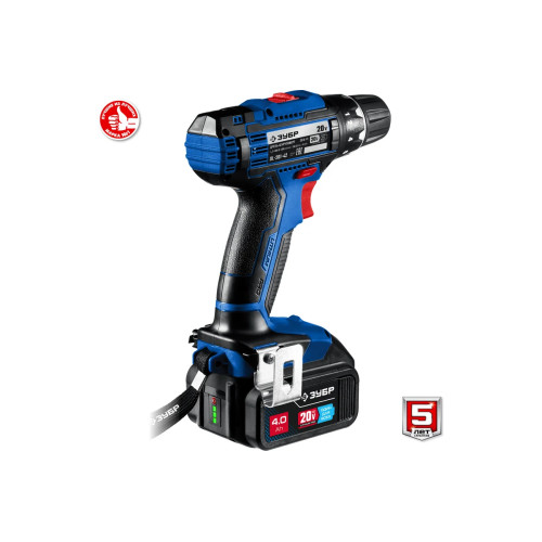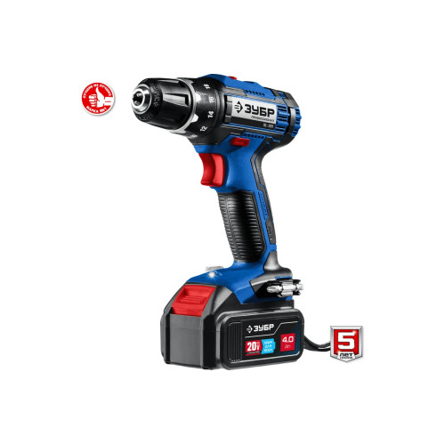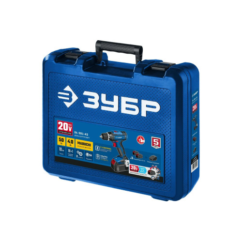 - Дрель-шуруповерт, кейс, Профессионал ЗУБР Т7, 20 В, 50 Н·м, 2 АКБ (4 А·ч) DL-201-42