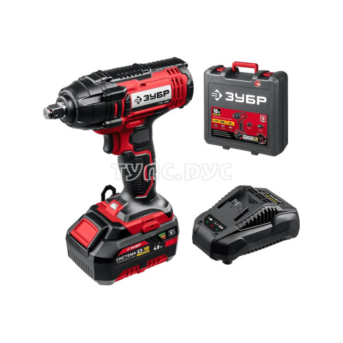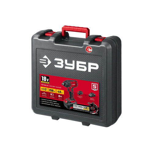 Гайковверт ударный, кейс ЗУБР С1-18, 18 В, 250 Н·м, 1 АКБ (4 А·ч) ГУЛ-255-41