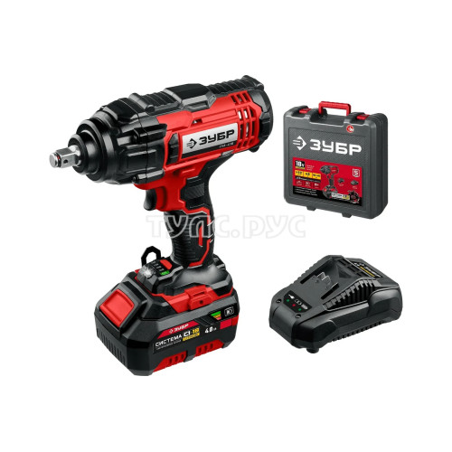 Гайковерт ударный, кейс ЗУБР С1-18, 18 В, 400 Н·м, 1 АКБ (4 А·ч) ГУЛ-410-41