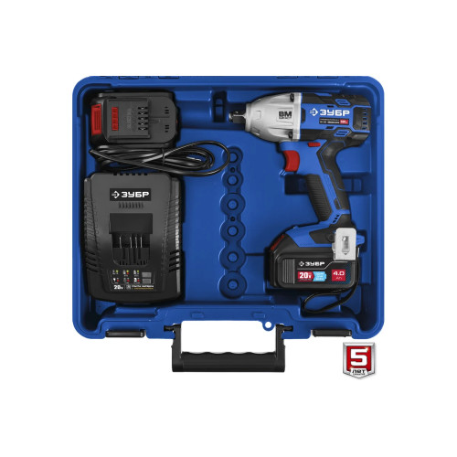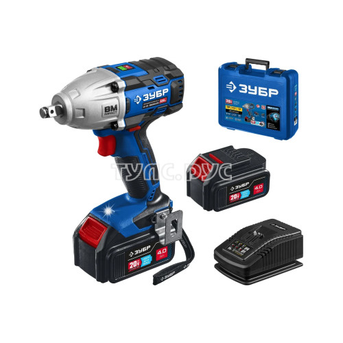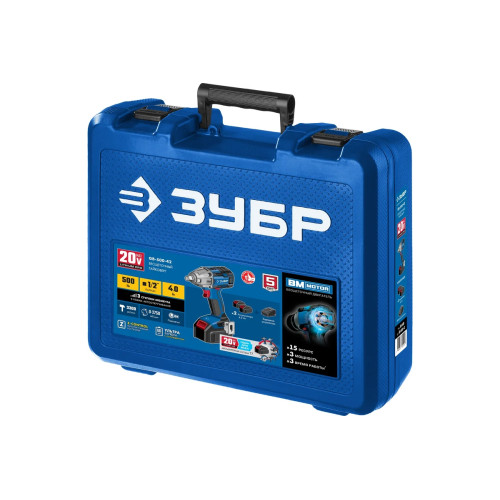 Бесщеточный гайковерт 20 в, 500 нм, 2 акб (4 ач), кейс ЗУБР Профессионал т7 GB-500-42 - гайковерт профессионального уровня с BRUSHLESS двигателем высокой эффективности и надежности. Крутящий момент 500 Нм позволяет закручивать крепеж размером до М22. Дополнительный автоматический режим ″срыва″ крепежа упрощает серийную работу. Две емкие батареи и ультрабыстрая зарядка помогают работать практически без перерывов.