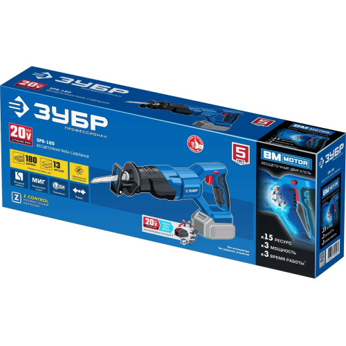 Бесщеточная пила сабельная, Профессионал ЗУБР Т7, 20 В, 180 мм, без АКБ SPB-180