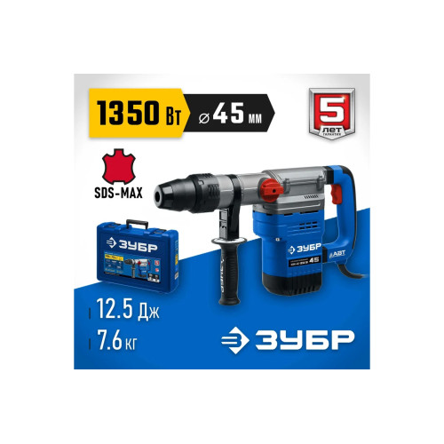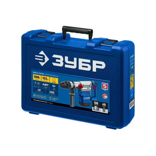 Перфоратор SDS-Max, Профессионал ЗУБР 45 мм, 1350 Вт, АВТ ЗПМ-45-1350 ЭВ