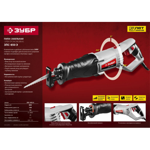 Пила сабельная (электроножовка), ЗУБР ЗПС-850 Э