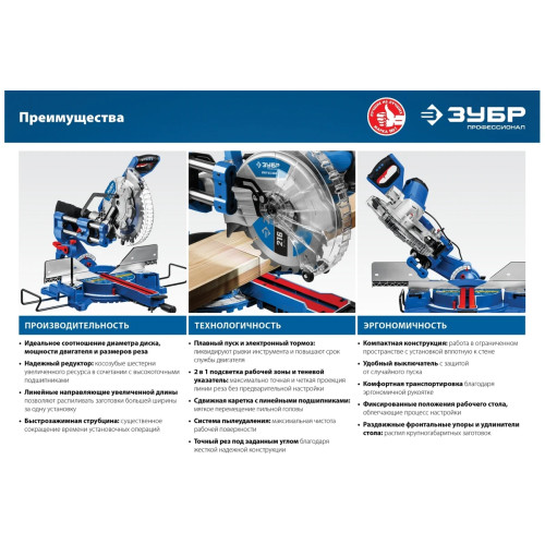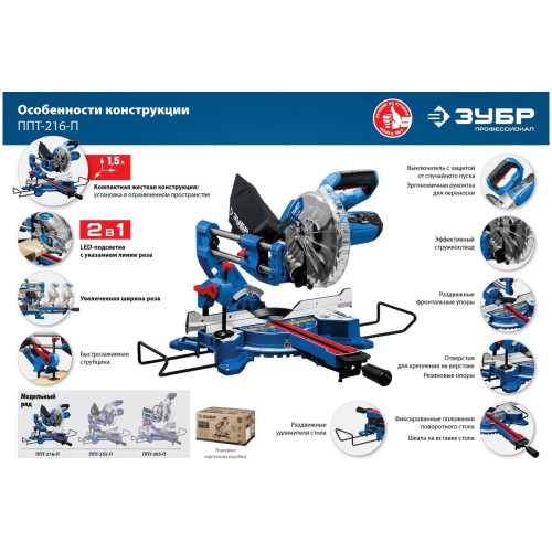 Торцовочная пила с протяжкой ЗУБР Профессионал ППТ-216-П