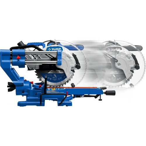 Торцовочная пила с протяжкой ЗУБР Профессионал, d 305 х 30 мм, 2000 Вт ППТ-305-П предназначена для пиления заготовок из дерева и производных материалов (фанера, ДСП, ДВП, МДФ, ламинированные панели), а также тонкого алюминиевого профиля (при установке соответствующего диска).