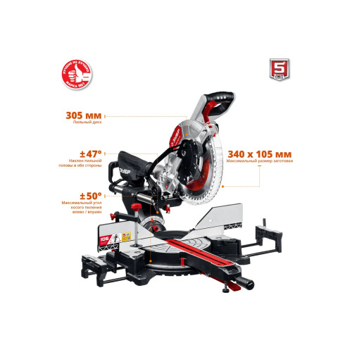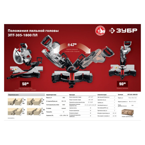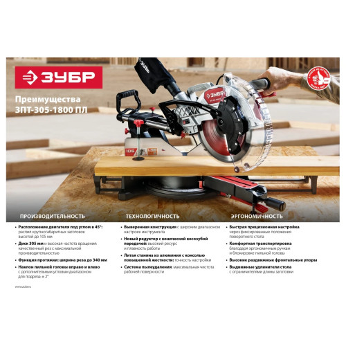 Торцовочная пила с протяжкой ЗУБР ЗПТ-305-1800 ПЛ