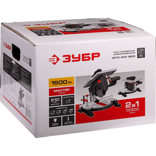 Пила торцовочная комбинированная, ЗУБР ЗПТК-210-1500