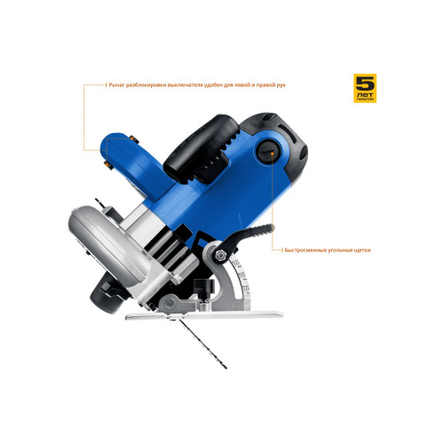 Предусмотрена возможность бесступенчатой регулировки глубины и угла пиления с удобными шкалами.