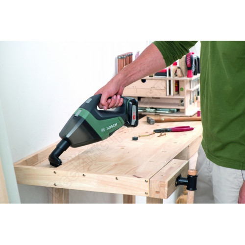 Аккумуляторный ручной пылесос Bosch UniversalVac 18 0.603.3B9.100 - мобильное, легкое и мощное устройство с постоянной силой всасывания. Удобен при уборке автомобилей, очистке ковровых покрытий и полов. Практичный дизайн в сочетании с мощным литий-ионным аккумулятором обеспечивает максимальную гибкость в работе. Длинная щелевая насадка позволяет легко добираться до труднодоступных мест.