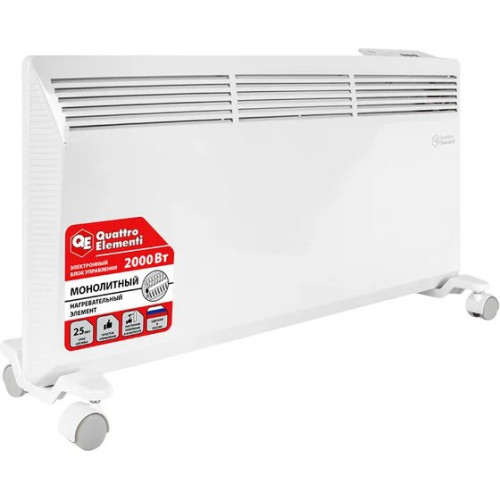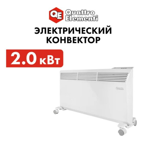 Конвекторный нагреватель воздуха QUATTRO ELEMENTI QE-2000KME предназначен для быстрого обогрева бытовых и подсобных помещений.