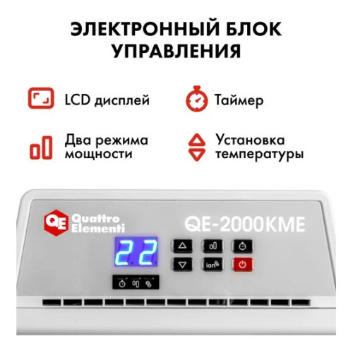 Преимущества QUATTRO ELEMENTI QE-2000KME 1,0/2,0 кВт, с эл.блоком управления, ТЭН монолит.