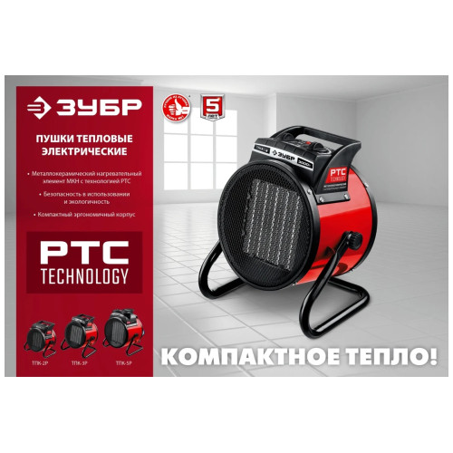 Электрическая тепловая пушка ЗУБР 3 кВт, МКН ТПК-3Р - устройство в круглом корпусе для обогрева небольших помещений. Благодаря маленьким размерам тепловую пушку легко переносить и хранить.