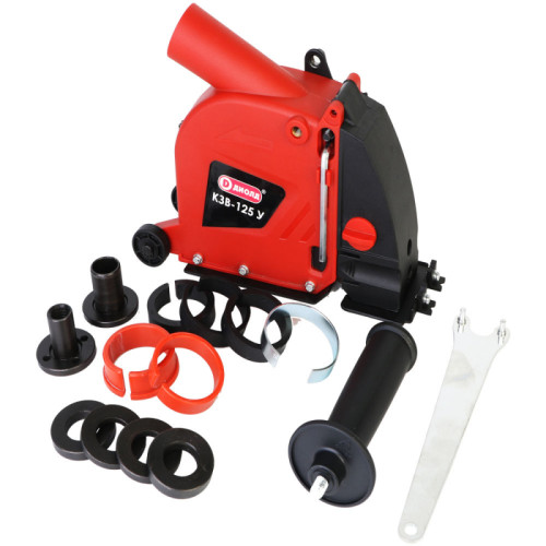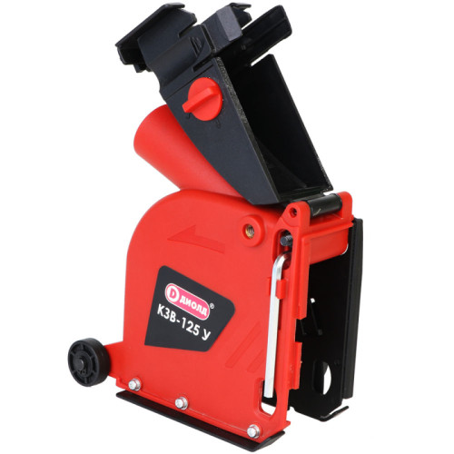 Кожух защитный вытяжной (насадка-штроборез) КЗВ-125 У ДИОЛД 90047004 - приспособление для угловых шлифмашин. Обеспечивает пропил по ширине и глубине пазов в камне, бетоне, газобетоне, кирпичной кладке и одновременный отвод образуемых при работе частиц обрабатываемого материала в контейнер пылеулавливающего устройства. Конструкция кожуха позволяет производить «врезку в угол». Использование насадки возможно с кругами диаметром 125 мм.