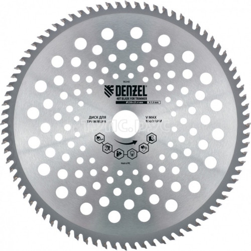 Диск для триммера, 40 зубьев DENZEL 96340 справляется с жесткой травой и мелкой порослью кустарников. Нож с зубцами из твердого сплава ВК8.