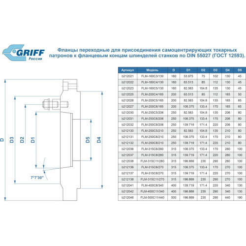 Фланец переходной GRIFF FLM-400C11/340 для токарного патрона b212042