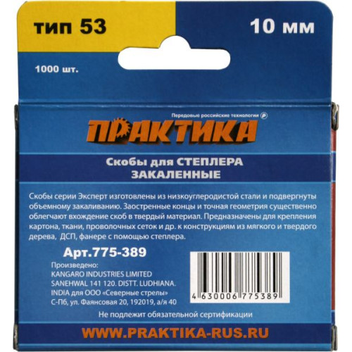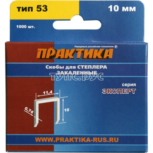 Скобы для степлера, 10 мм, Тип 53, толщина 0,74 мм, ширина 11,4 мм, (1000 шт) коробка