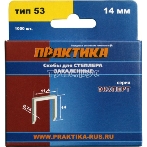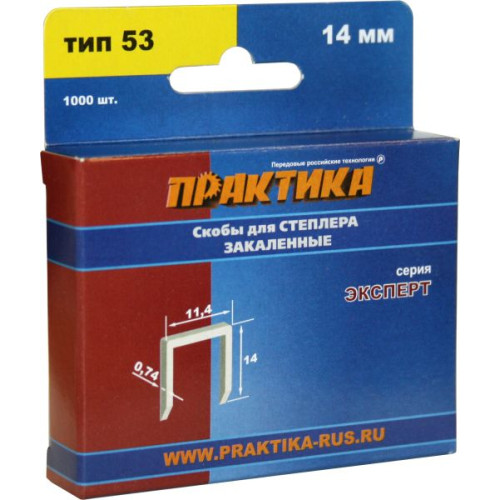 Скобы для степлера, 14 мм, Тип 53, толщина 0,74 мм, ширина 11,4 мм, (1000 шт) коробка