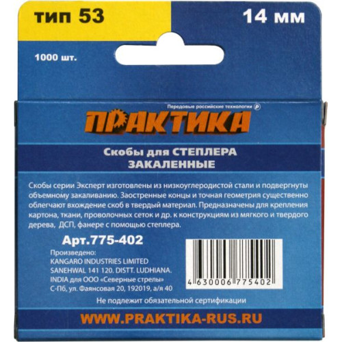 Тонкие скобы типа 53 с высотой ножки 14 мм, являются универсальным крепежным средством при выполнении таких работ как: скрепление деревянных реек, прибивание ткани мягкой мебели, картона, крепление проволочных сеток, полиэтилена, бумаги и пр.