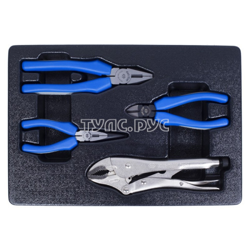 Набор пассатижей, плоскогубцев и бокорезов, ложемент, 4шт KING TONY 9-42144GP состоит из 4 предметов, располагается на ложементе, служит для комплектации инструментальной тележки и удобства работы мастера.