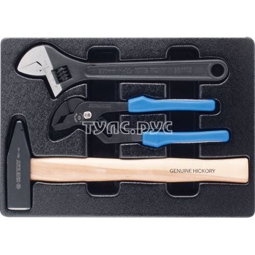 - Качественное исполнение набора инструментов (переставные клещи, разводной ключ и молоток, ложемент, 3 предмета) KING TONY 9-90103PP02.