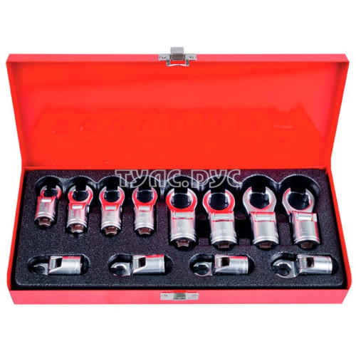 Набор разрезных ключей (8-19 мм, 12 предметов) KING TONY 3612MR включает в себя функциональные инструменты для работы с крепежом. Конструкция позволяет легко и просто изменять конфигурацию ключей и использовать их как разрезные (ремонт воздушных магистралей, трубок гидравлических и прочих систем), накидные (установка резьбовых элементов в небольших углублениях) или Т-образные (работа с утопленным внутрь корпуса крепежом). В случае работы в Т-образном формате требуется вороток или трещотка.