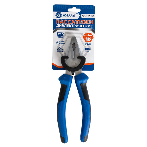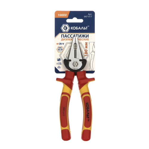 Пассатижи диэлектрические 180 мм КОБАЛЬТ 647-017 предназначены для работы с проводкой и другим оборудованием, находящимся под напряжением до 1000 Вольт.