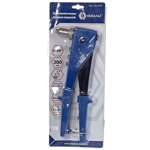 Заклепочник 260 мм, переставной 0-90 град., заклепки 2,4-3,2-4,0-4,8 мм 243-516 Кобальт