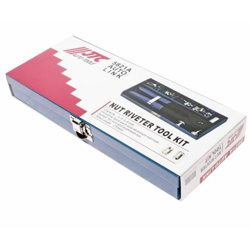 - В комплекте с ручным резьбовым заклепочником JTC 5821A поставляется удобный металлический кейс, в котором можно хранить как сам инструмент, так и расходные материалы;