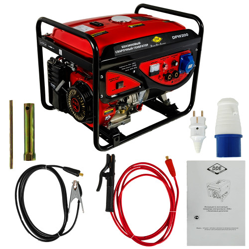 В случае отсутствия стационарного электроснабжения или стихийного бедствия, данный сварочный генератор поможет в проведении различного рода работ: монтажных, аварийных, ремонтных и прочих. Так как оборудование многофункциональное, оно может выполнять функцию обычного источника питания. При всей своей громоздкости, сварочный генератор DDE DPW200 однофазный 4 кВт потребляет 2,6 литра А-92 за один час работы. Благодаря вместительному баку для горючего, оборудование будет работать достаточно долго без дозаправки.