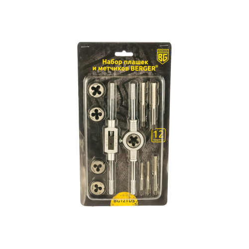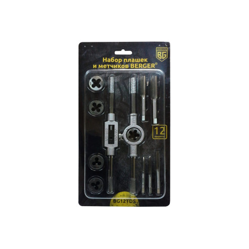 Набор плашек и метчиков 12шт Berger BG BG12TDS - комплект металлообрабатывающих инструментов и приспособлений, которые служат для нарезки и калибрования внутренней/внешней резьбы. Все компоненты изготовлены из высококачестве