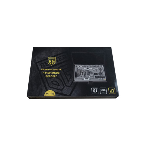 Набор плашек и метчиков 31шт Berger BG BG31TDS используется для быстрой и качественной нарезки, а также калибровки резьбы как внутренней, так и наружной. В комплекте предусмотрено большое количество инструментов различных по профилю и размеру, которые станут оптимальным решением для профессионального применения.