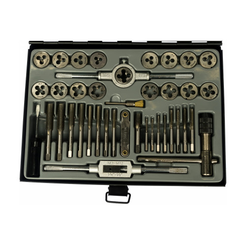 Набор плашек и метчиков 40шт Berger BG BG40TDS включает в себя большое количество инструментов и приспособлений для профессионального использования. Они обеспечивают высокое качество нарезания и калибрования внешней и внутренней резьбы на металлических деталях и заготовках. Все компоненты изготовлены из высококачественной стали, имеют повышенный рабочий ресурс.