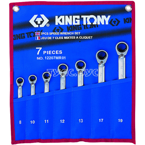 Набор комбинированных трещоточных ключей, 8-19 мм, чехол из теторона, 7 предметов KING TONY 12207MRN01