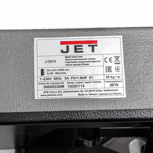 Удобство в работе Специальная рукоять способствует удобству эксплуатации ленточной пилы по металлу JET J-351V 50000336M. |