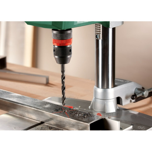 Способен сверлить отверстия в стали диаметром до 13 мм. Быстродействующий зажим успешно заменяет тиски.