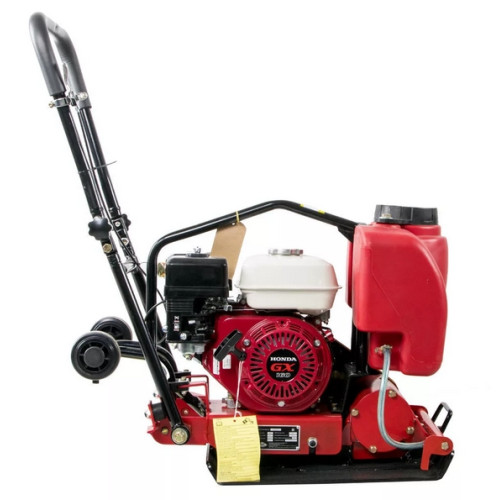 Надежный двигатель с хорошими креплениями обеспечивает низкий шум вибраций. Двигатель снабжен также датчиком уровня масла. Для удобства в транспортировке виброплита имеет колеса из прочного пластика.