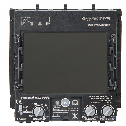 Маска сварщика КЕДР К-904 карбон 8006519 с полностью автоматическим включением и выключением используется при TIG и MIG сварке. Имеет режим "сварка" и "шлифовка", регулировки чувствительности, затемнения и задержки. Кнопка "Тест" позволяет проверить уровень заряда батарейки и работу светофильтра.   Увеличенное смотровое окно обеспечивает сварщику достаточную обзорность зоны сварки. Корпус маски изготовлен из высокопрочного полиамида, который отличается стойкостью к воздействию внешней среды.