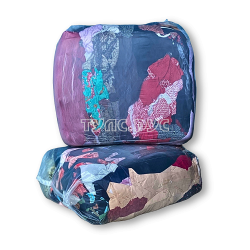 Обтирочный материал из переработанной и отсортированной одежды секонд-хенд (майки, рубашки, брюки, спецодежда). Состав - преимущественно хлопок, могут присутствовать: джинса, синтетика, вязаные вещи. Ткань не сдержит посторонних включений (молний, куговиц, кнопок, пряжек.