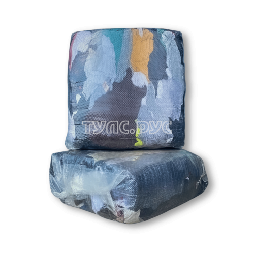 Состоит из лоскутов трикотажных изделий (майки, футболки, водолазки, толстовки, блузки) неправильной формы. Материал прекрасно впитывает масло, воду, нефтепродукты. Важное свойство ткани - хорошо растягивается, что позволяет проникнуть в труднодоступные для протирки места, обладает отличной прочностью и легкостью.